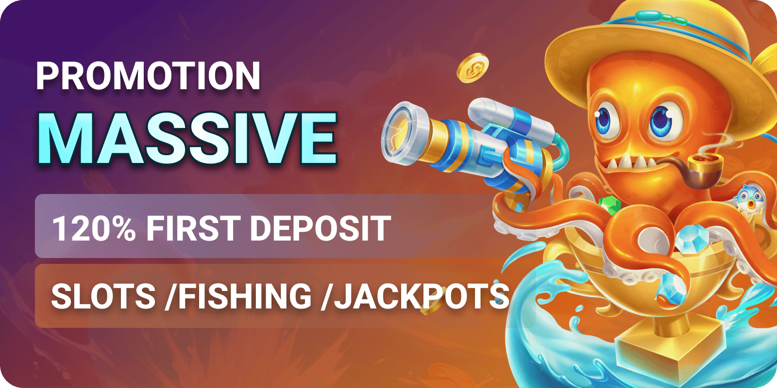 SLOT / FISH SHOOTING / JACKPOT PROMOTION – 120% BONUS ON FIRST DEPOSIT